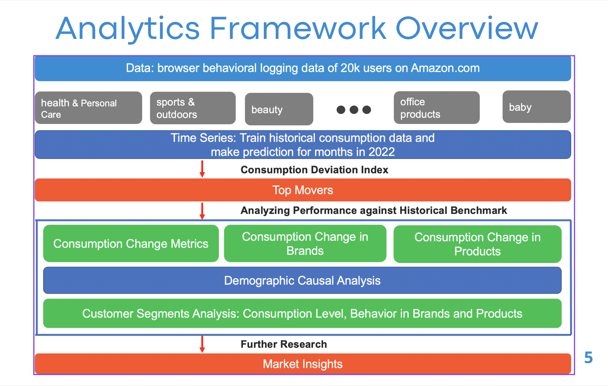 Given the datastream and all related themes, we would want to leverage this data to identify early signals among various consumption sectors, unfold demographic factors correlated the change the most, and see how much so called constructual and behavioral contribution each segment makes to the change.